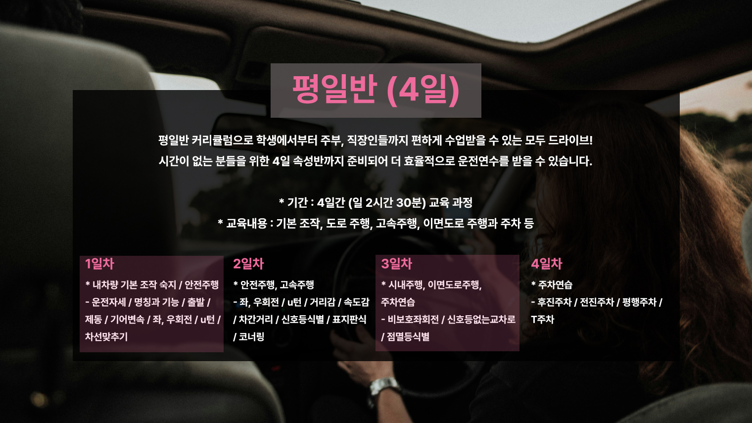 자기차량 * 중형, 준중형 차량 * 280,000원 더보기 자기차량 * SUV 차량 * 280,000원 더보기 연수차량 * 중형, 준중형 차량 * 320,000원 더보기 연수차량 * SUV 차량 * 340,000원 더보기 자기차량 * 중형, 준중형 차량 * 280,000원 자기차량 * SUV 차량 * 280,000원 연수차량 * 중형, 준중형 차량 * 320,000원 연수차량 * SUV 차량 * 340,000원